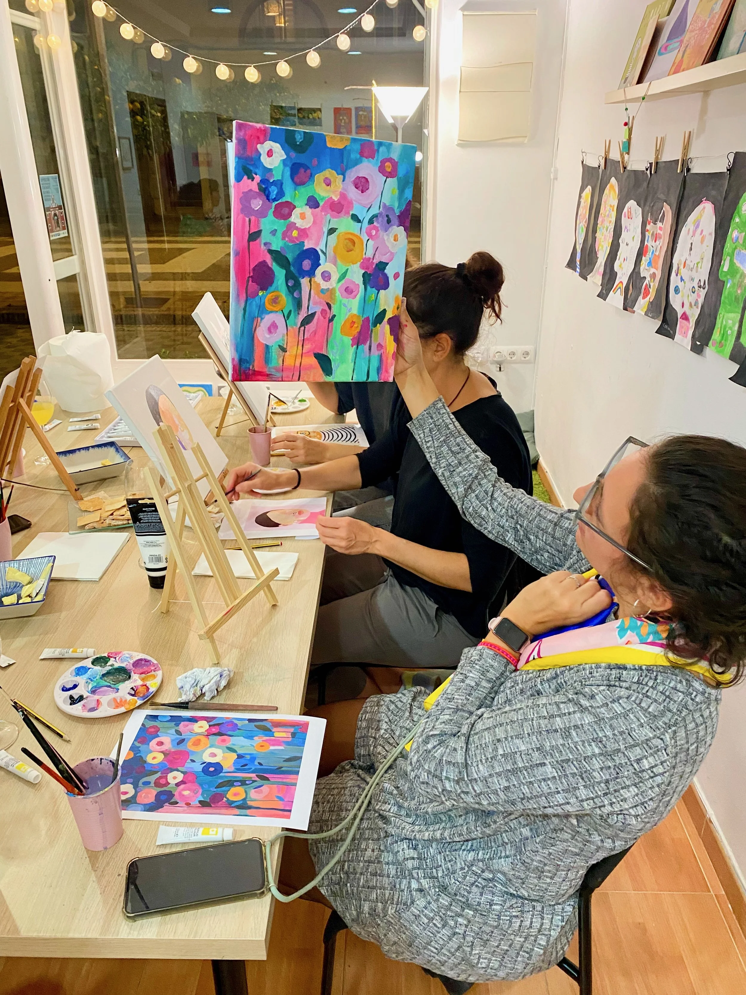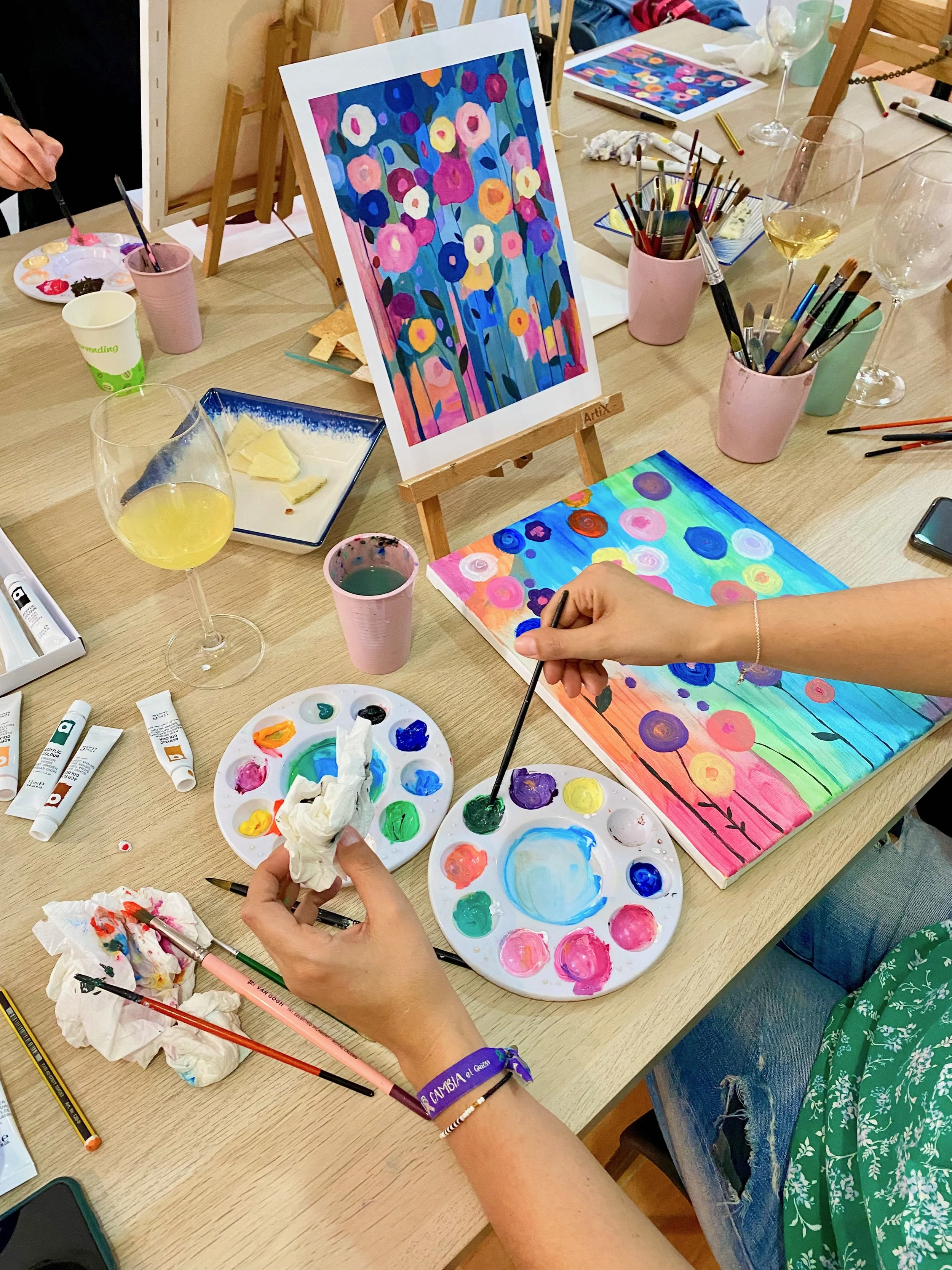 El 28 de noviembre te invitamos a una experiencia diferente: una copa de vino, buena compañía y un cuadro pintado por ti. Pasaremos una tarde relajada y creativa, aprendiendo técnicas sencillas mientras disfrutamos del proceso sin prisa y con risas.