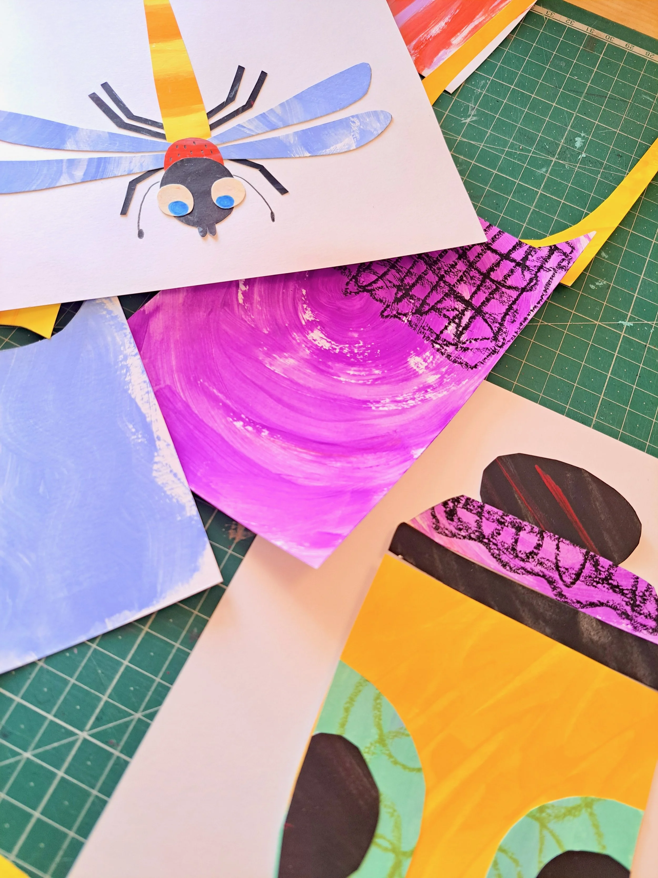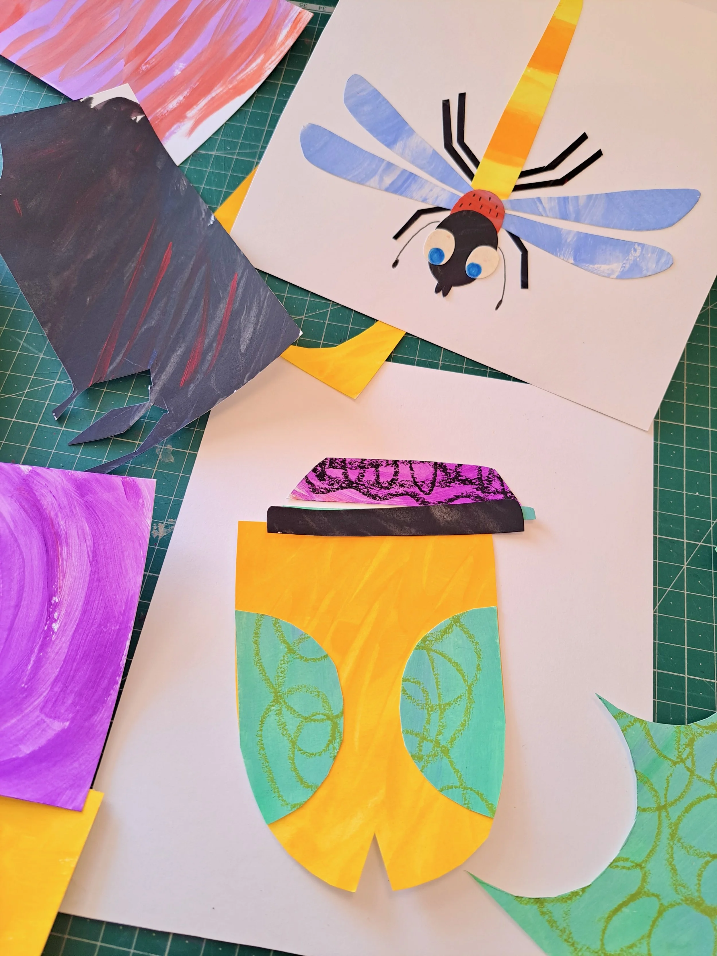 Una mañana para jugar con el color, las formas y la imaginación. Pintaremos papeles de distintos tonos y texturas, los recortaremos y combinaremos para crear insectos únicos y llenos de vida.