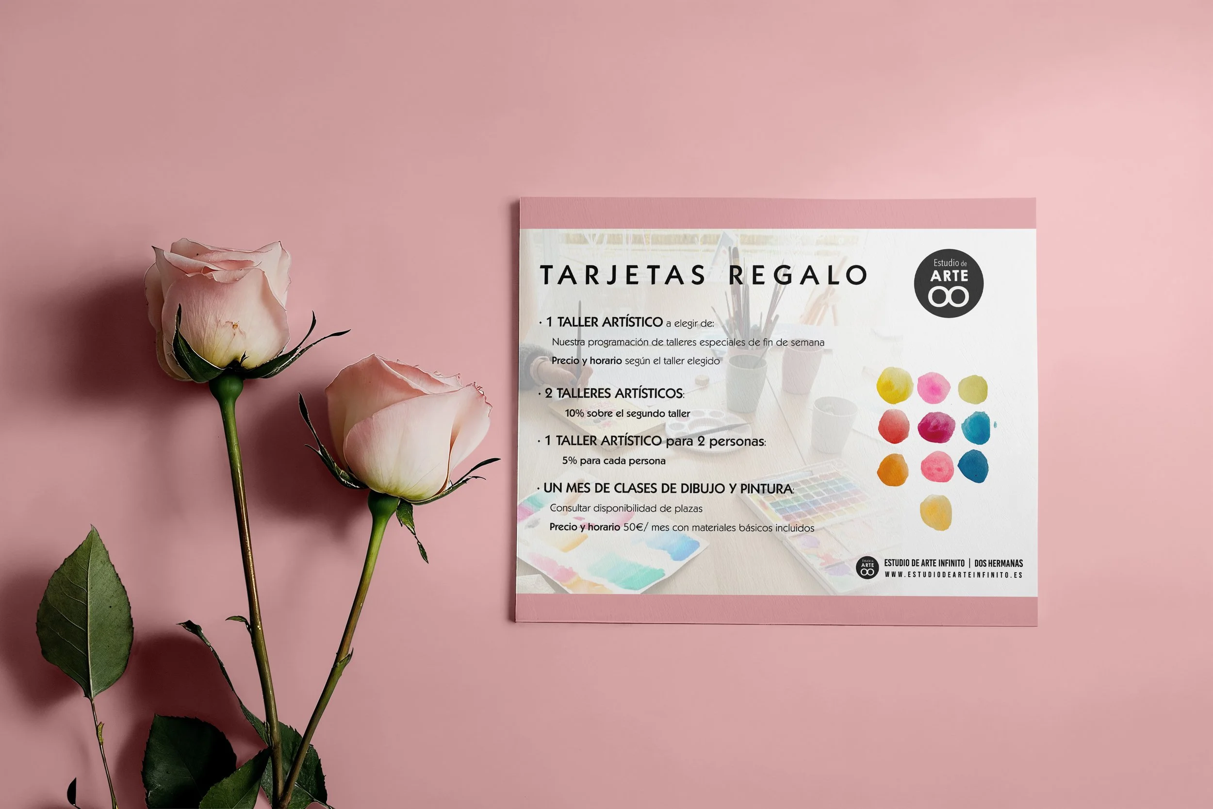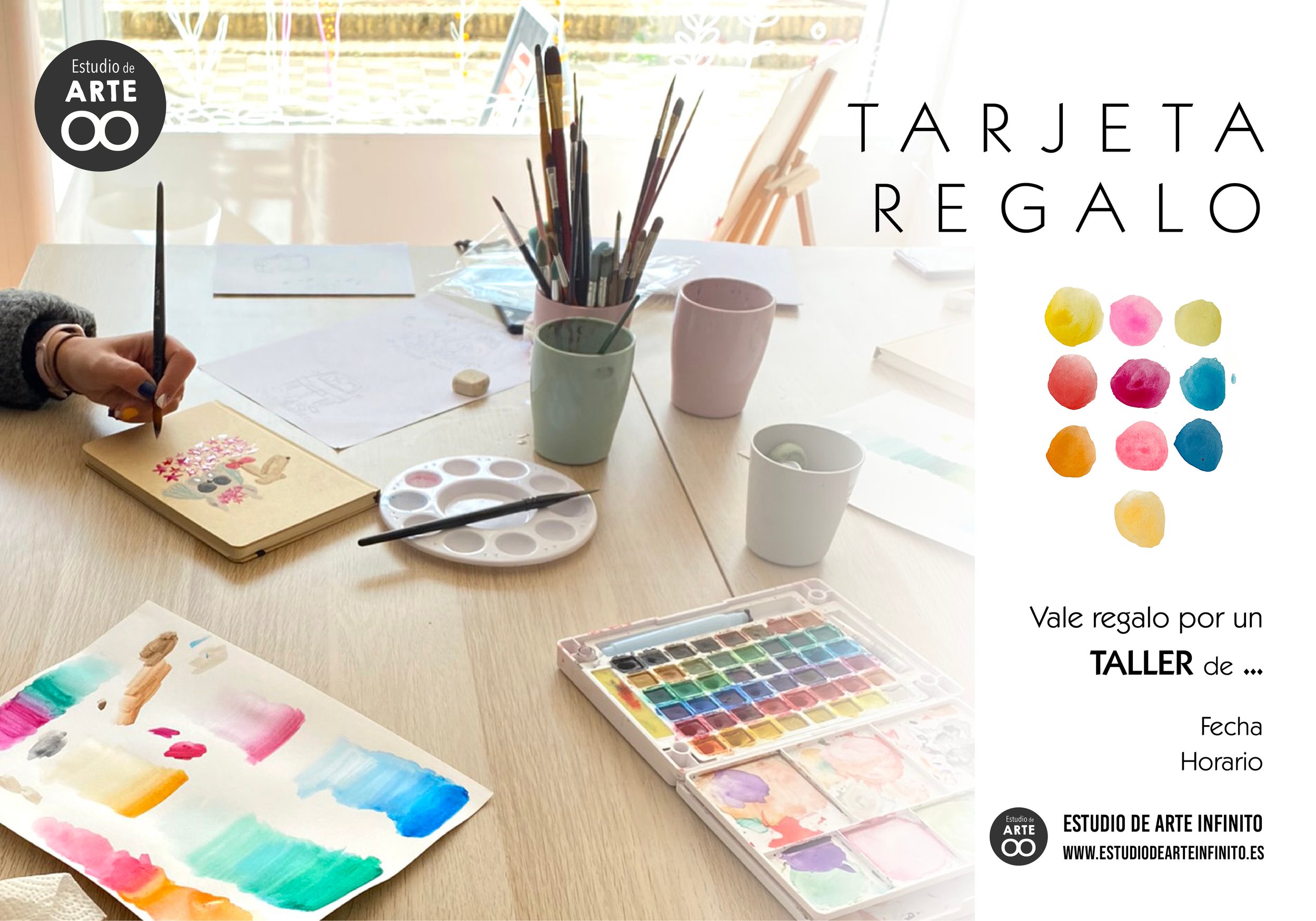 Así será la tarjeta que te entregaremos, con los datos de la persona a la que va dirigida y el taller artístico que desees regalar.